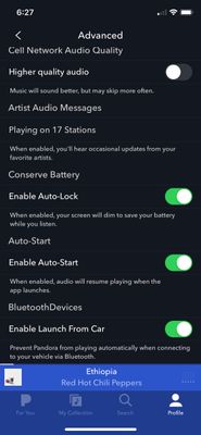 2- His android phone has the pandora app but the app does not show bluetooth options